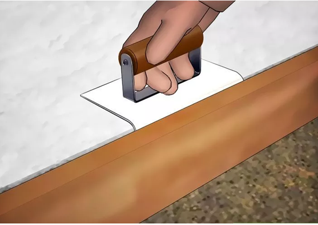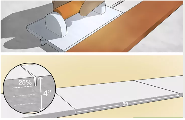 Nghiêng mép hơi ra khỏi hướng đi để tạo ra một cạnh cắt mỏng nơi Ban cán nền đáp ứng bê tông.