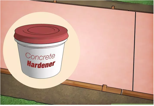 6 Áp dụng một chất làm cứng màu (tùy chọn). Nếu bạn đang tô màu cụ thể của bạn sử dụng một loại bột có thêm màu sắc cho các lớp trên, áp dụng điều này trong số tiền quy định trên nhãn khi bê tông vẫn có một bóng ướt đầy đủ. Nó vẫn sẽ yêu cầu làm khô hơn một chút trước khi bạn tiến hành giai đoạn tiếp theo.