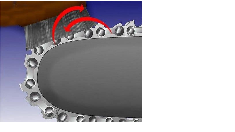 Bước 6: Xác đính hướng dũa và phương dũa như thế nào? Đây là gốc của răng cắt, trên mặt trước của xích. Dũa phải có đường kính cong phù hợp với bán kính cong của răng cắt. Đường kính giũa phải đạt 20% so với đỉnh răng.