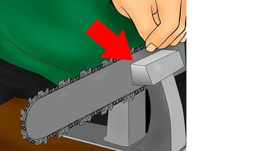 Bước 4: Đặt máy cưa lên giá đỡ cố định và chắc chắn bằng các dụng cụ chuyên dụng như e tô, kẹp giữ... Máy cưa xích phải được cố định cho phép thực hiện công việc dũa được nhanh chống và chính xác. Việp kẹp chắt lam trong e tô, kẹp giữ phải đảm bảo xích được quay tự do.