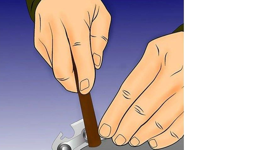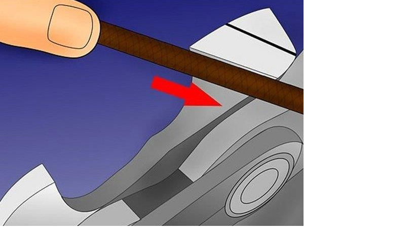 Bước 7: Giũa đuôi xích như thế nào, sau khi xác định hướng dũa và phương dũa, chúng ta tiến hành dũa mắt đầu tiên. Bắt đầu bằng cách đẩy giũa đi về phía trước như hình ảnh minh họa bên dưới.