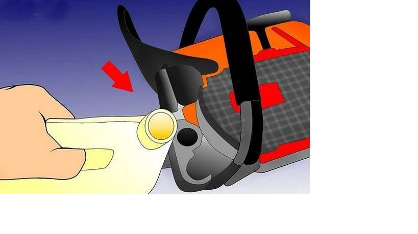 Bước 12: Kiểm tra dầu bôi trơn lam xích. Nếu thấp hơn mức quy định nên châm thêm dầu và kiểm tra độ chùng của xích. nếu xích chùng hơn mức quy định nên cân chỉnh lại độ căng của xích.