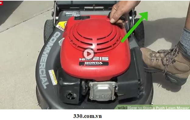 1 Chuẩn bị để bắt đầu cắt cỏ. Di chuyển máy cắt cỏ để một, khu vực cỏ mở. Xóa bỏ đồ chơi hoặc các loại đá bất kỳ trẻ em. 2 Hãy chắc chắn rằng máy cắt của bạn có xăng và dầu. Nếu máy cắt cỏcủa bạn có một động cơ 4 thì, bạn có thể kiểm tra dầu bằng cách mở nắp dầu Fill hoặc que thăm. Nếu máy cắt cỏ của bạn có một động cơ 2 thì bạn sẽ cần phải pha nhớt 2 thì. Hãy chắc chắn rằng bạn kết hợp các đúng loại dầu với khí, và trong các tỷ lệ thích hợp cho động cơ của bạn.
