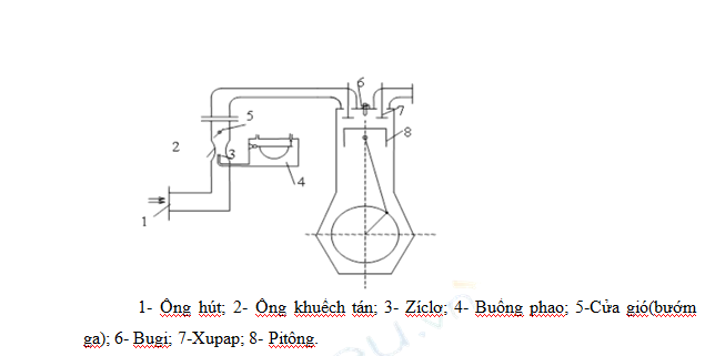 Hình 1-1: Sơ đồ cấu tạo của động cơ có cacbuarator.