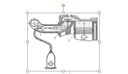 1- Ống hút; 2- Ống khuếch tán; 3- Zíclơ; 4- Buồng phao; 5-Cửa gió(bướm ga); 6- Bugi; 7-Xupap; 8- Pitông. b/ Loại dùng vòi phun: Về mặt quá trình công tác mà nói động cơ phun xăng và động cơ xăng dùng cacbuarator không khác nhau lắm. Chúng chỉ khác nhau ở chỗ việc hình thành hỗn hợp cháy. Động cơ phun xăng không dùng cacbuarator (nhiên liệu được hút vào ống khuyếch tán) mà dùng bơm nhiên liệu vào động cơ.