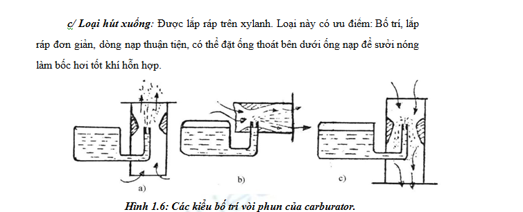 Hình 1.6: Các kiểu bố trí vòi phun của carburator.